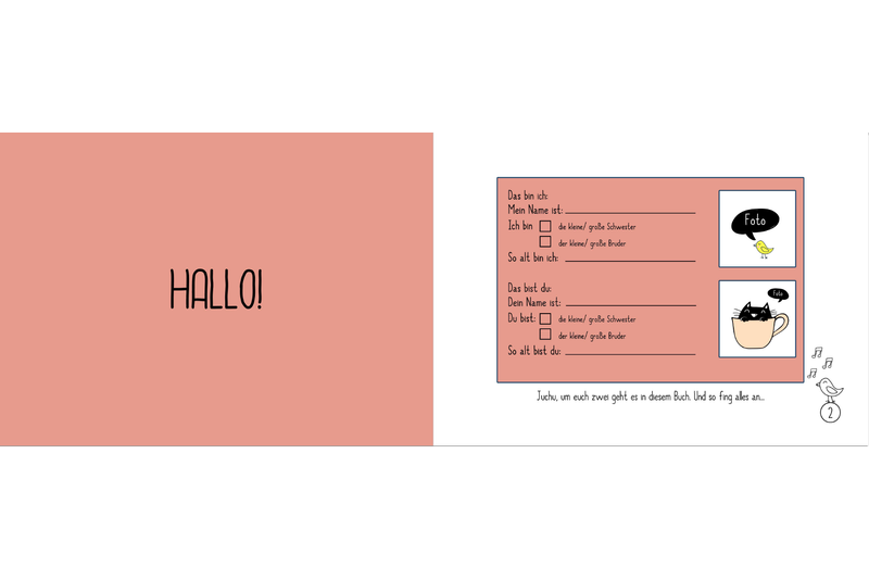 Mit insgesamt 30 Seiten für Fotos, Texte und Mal- und Bastel-Spaß ergibt dies einen richtigen Erinnerungsschatz, den jedes Geschwisterkind bestimmt auch als Erwachsener einmal gerne wieder in die Hand nehmen und durchblättern wird.