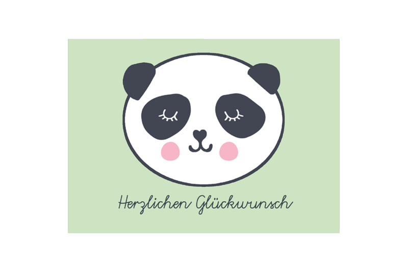 Diese Postkarte für Kinder mit einem lustigen Panda-Gesicht ist eine süße Grußkarte für Jungs oder Mädchen z. B. zum Geburtstag, zur Einschulung, zur Taufe oder für alle anderen Gelegenheiten, zu denen man "Herzliche Glückwünsche" senden möchte.